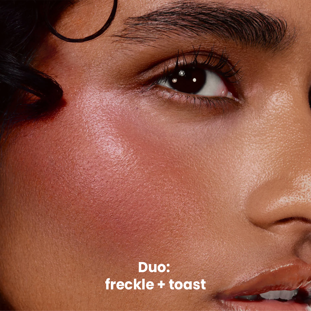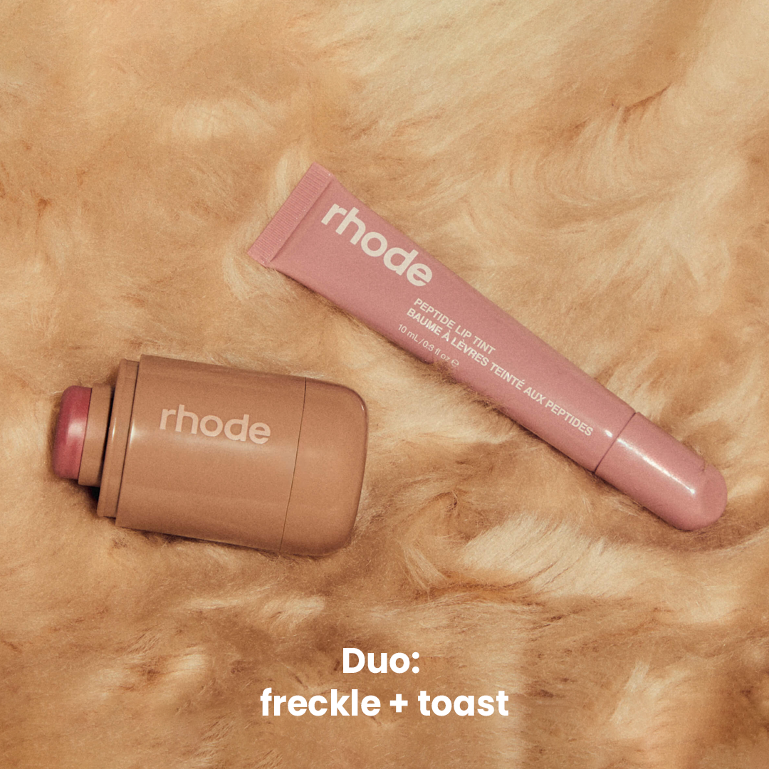 ポケットブラッシュとペプチドリップティントのペアシェードを組み合わせたデュオは、自然な単色ルックを実現します。ポケットブラッシュは、頬と唇をサテンのようにふっくらとした血色感で目覚めさせ、肌に潤いを与えて赤ちゃんのように柔らかな頬へと導きます。ペプチドリップティントは唇に溶け込み、ほのかな色づきとリッチでツヤのある仕上がりで、潤いに満ちたふっくらとした唇へと導きます。