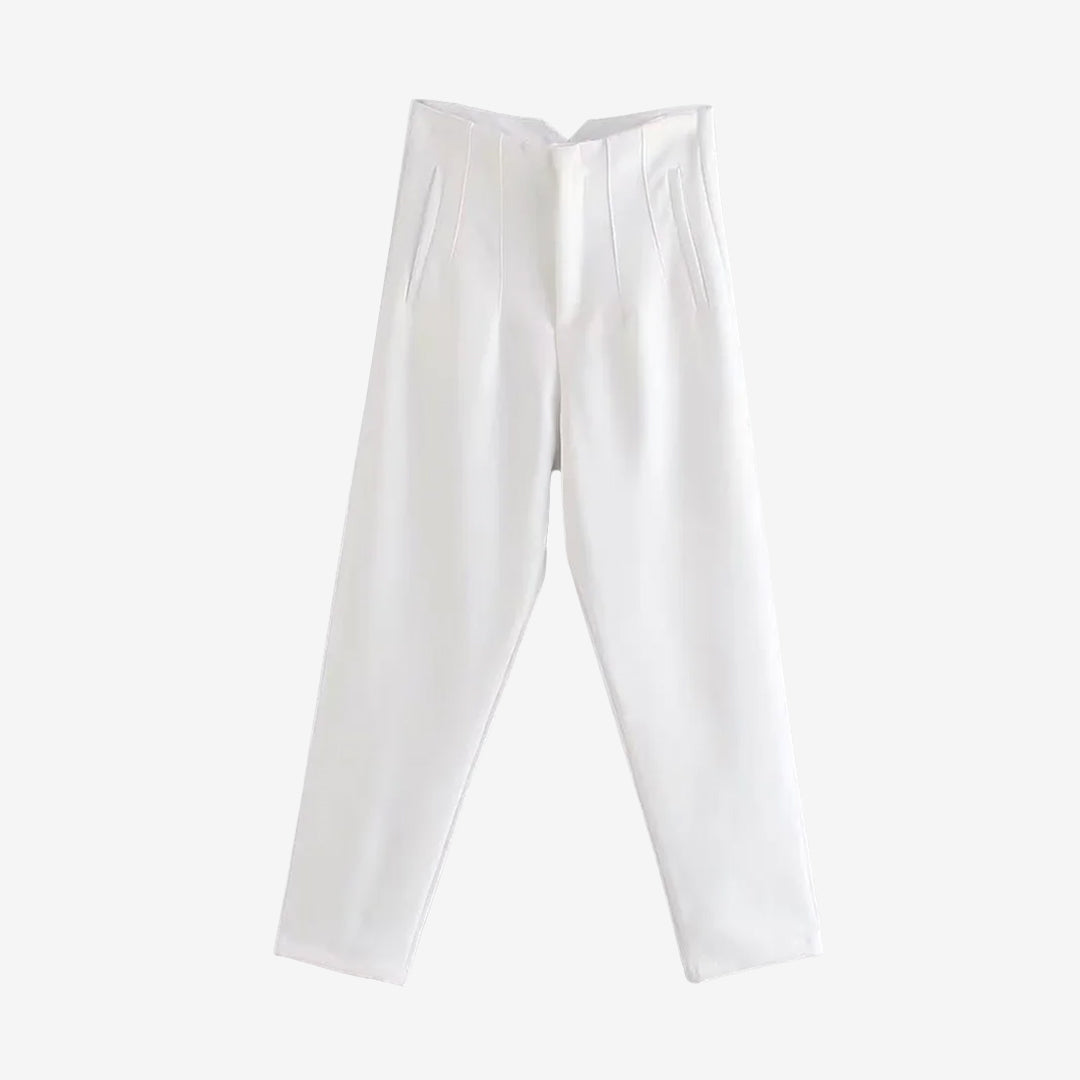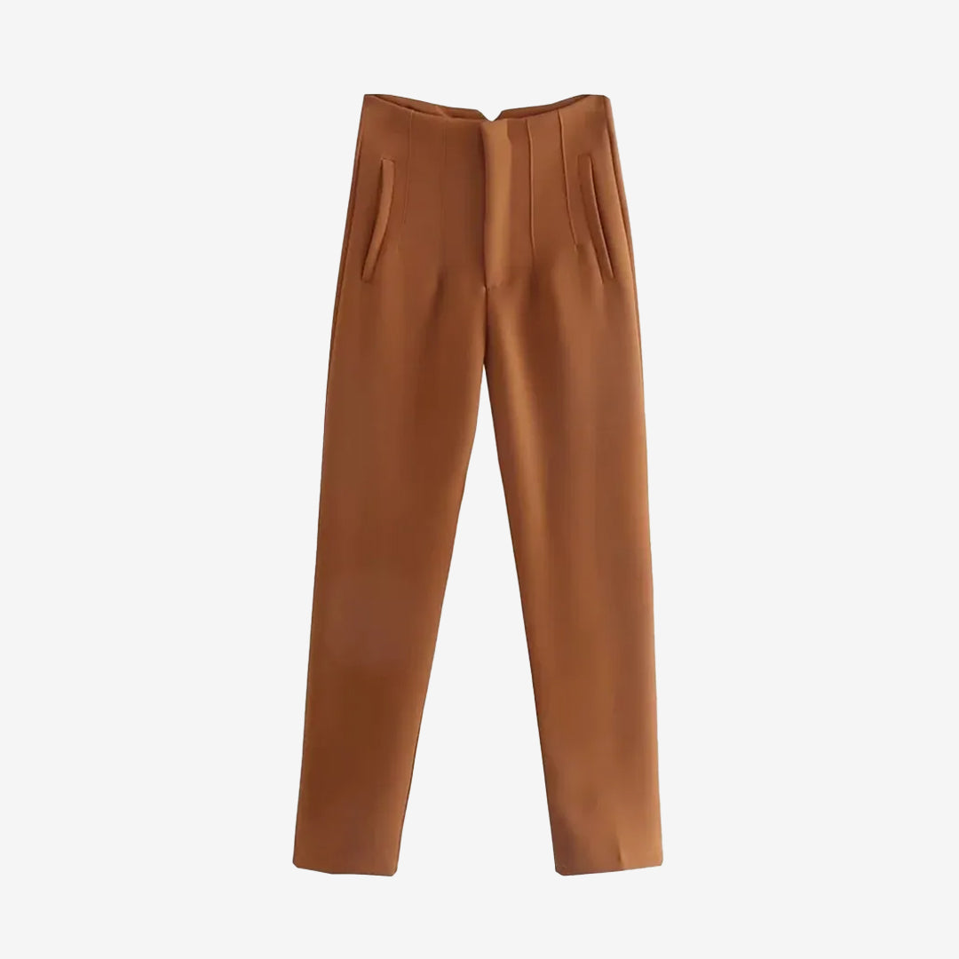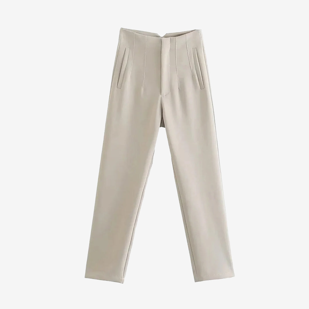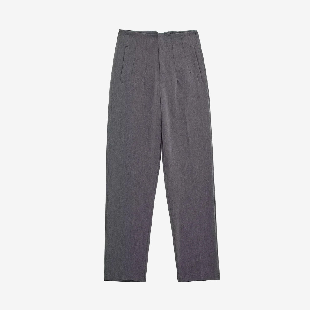 シームディテールとジッパーフライのハイウエストパンツ