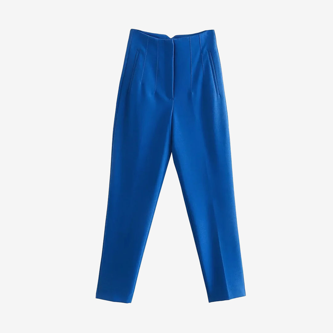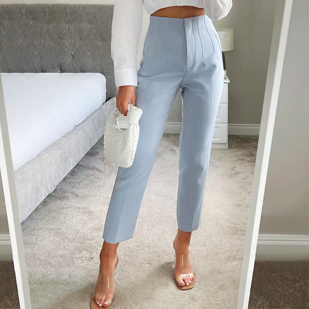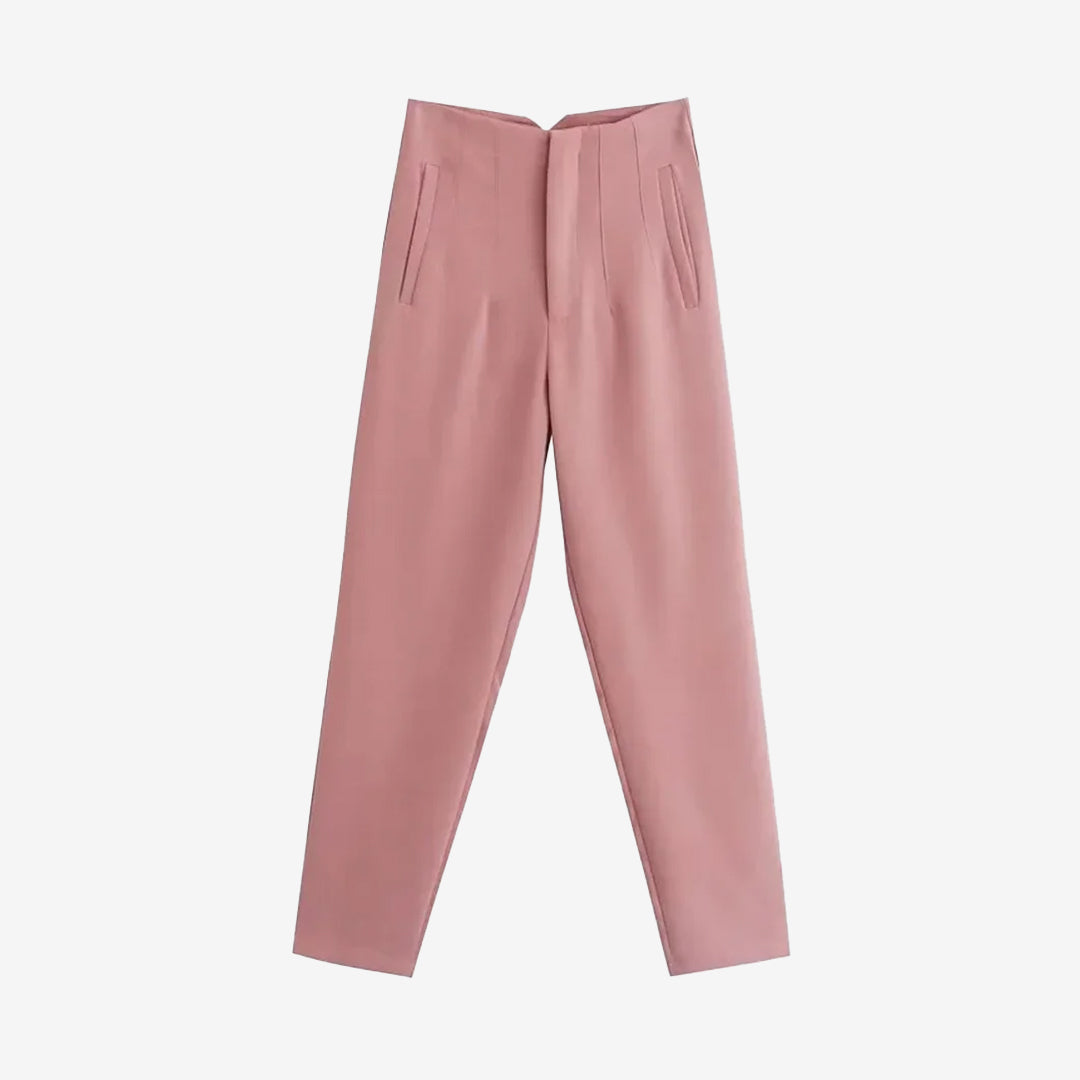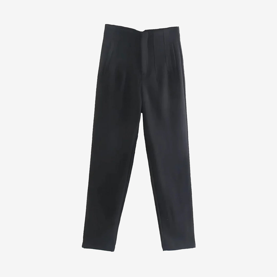 シームディテールとジッパーフライのハイウエストパンツ