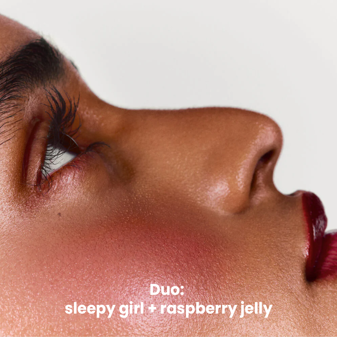 ポケットブラッシュとペプチドリップティントのペアシェードを組み合わせたデュオは、自然な単色ルックを実現します。ポケットブラッシュは、頬と唇をサテンのようにふっくらとした血色感で目覚めさせ、肌に潤いを与えて赤ちゃんのように柔らかな頬へと導きます。ペプチドリップティントは唇に溶け込み、ほのかな色づきとリッチでツヤのある仕上がりで、潤いに満ちたふっくらとした唇へと導きます。