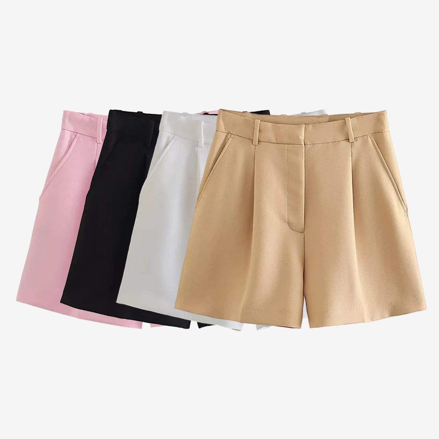 サイドポケット付きレディースハイウエストバミューダショーツ